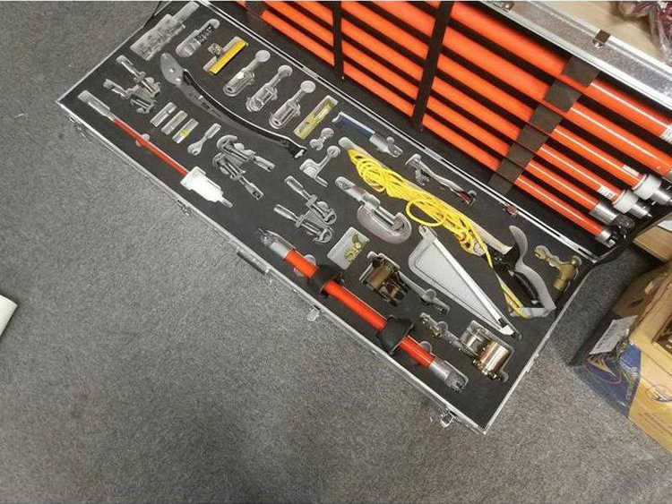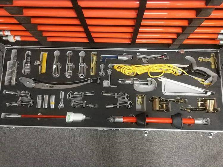 3.配置:修枝剪、修枝鋸、錘頭、鋼鋸、棘輪扳手、套筒、靈活扳手頭、異物切割刀、異物剝離器、導(dǎo)線刷、交換母頭、交換公頭、拉閘桿接頭、萬向刀刃頭、鏟叉、卡線鉤、鎖頭、繞線器、并線器、防雨操作桿、驗電器、絕緣螺旋接頭操作桿